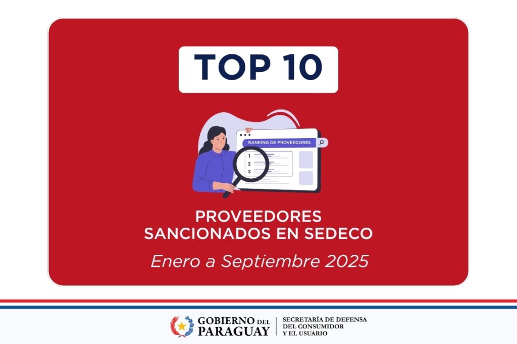 Desde la SEDECO compartimos el listado de los 10 principales proveedores sancionados en el período enero a septiembre de 2025, resultado de los procedimientos administrativos desarrollados en defensa de los derechos de los consumidores.